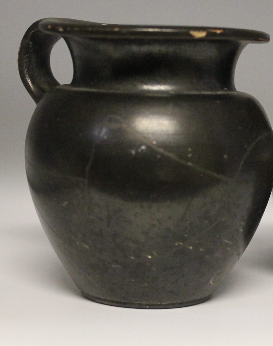 A black-glazed olpe is a type of ancient Greek pottery from around 400 to 300 BC.
