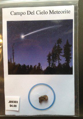 Campo del Cielo Meteorite – a coarse octahedrite 1A meteorite from the famous Argentina fall. This nice specimen measures 3/8″ long. It is packaged with a description of the history of the meteorite.