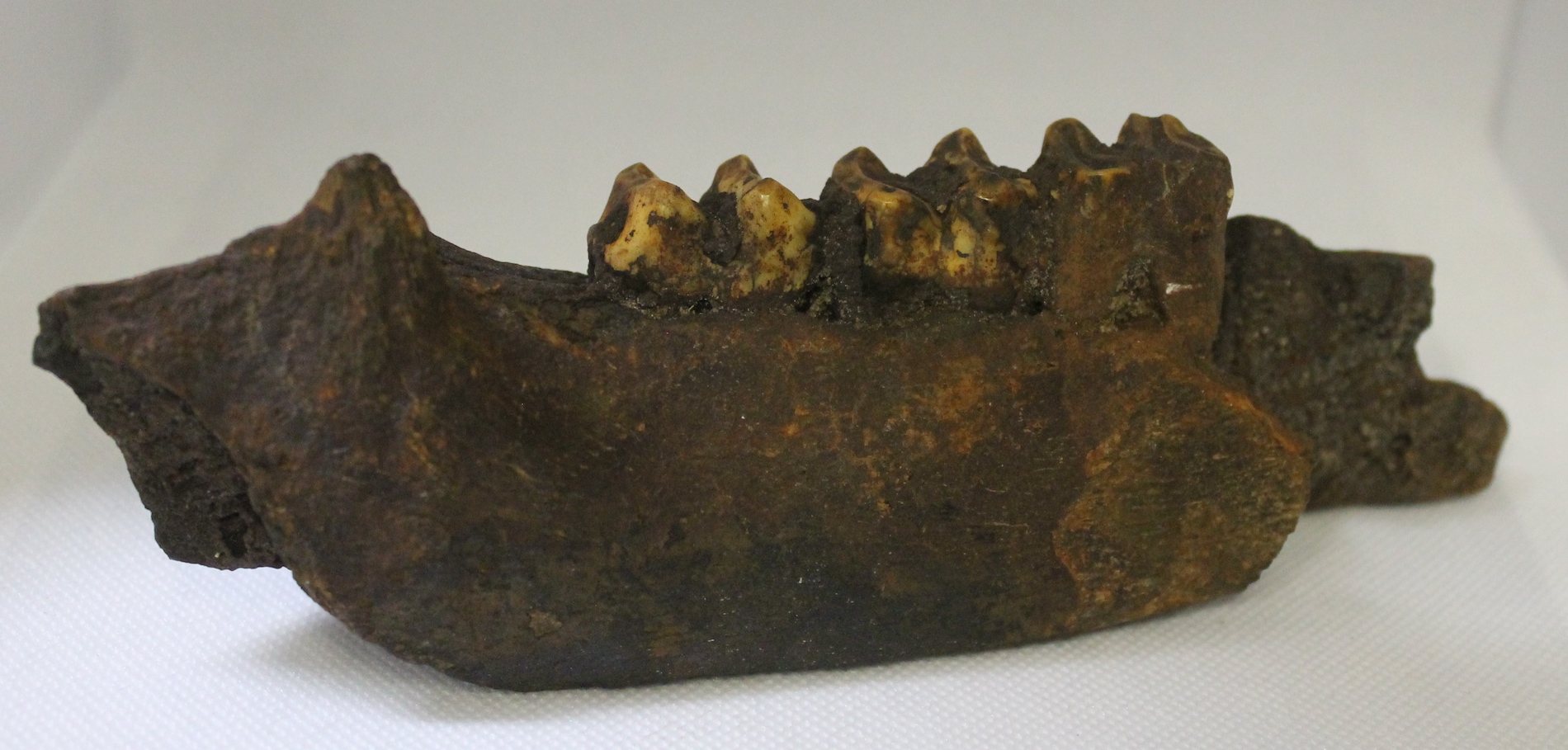 The fossil Tapir Jaw found in North Florida is a fossil that provides important information about ancient wildlife. It dates to the Late Pleistocene, The jaw was discovered in the area’s rich sediments and belongs to an extinct species of tapir that lived there thousands of years ago. Its shape indicates it came from a large plant-eating animal, with teeth designed for grinding plants. Tapirs are similar in shape to a pig, with a short, prehensile nose trunk.This fossil helps scientists learn about the diversity of life in prehistoric Florida and the environment at the time, offering clues about the ecosystems where these animals once lived. They became extinct around 12,000 years ago.