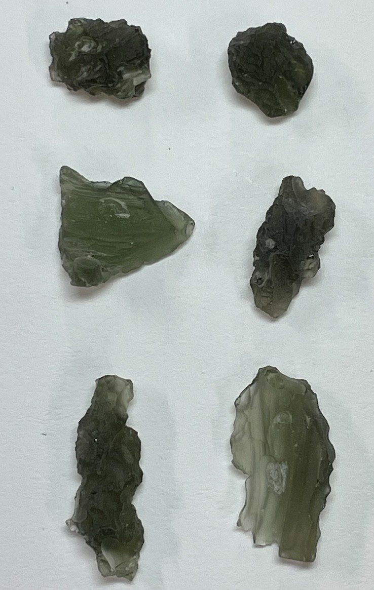 These Pieces piece of moldavite weigh between 5.5 and 7 cts. These are sold by the piece, NOT the lot.