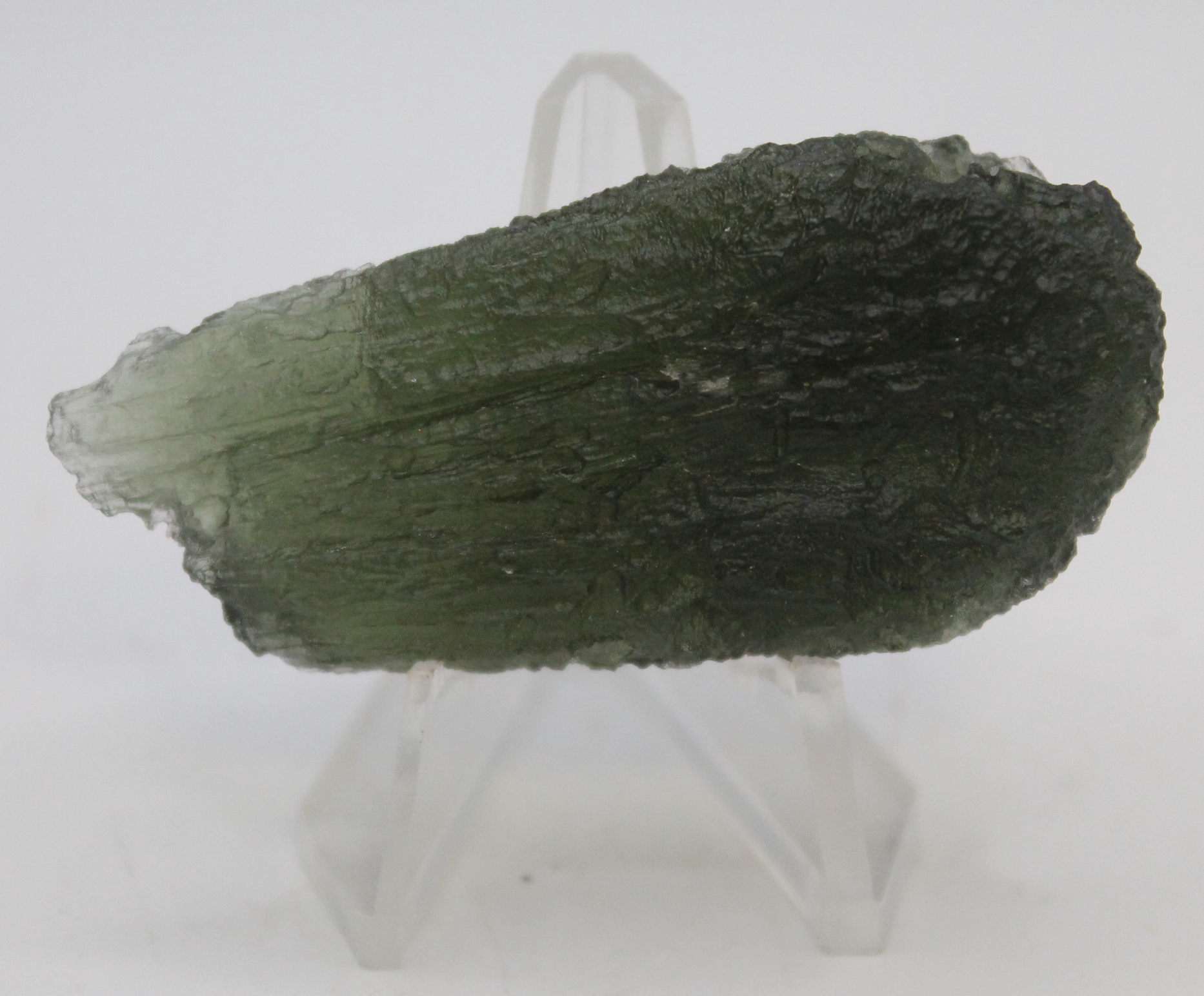 Moldavite is a green, glass-like stone that formed about 15 million years ago when a meteorite hit the Earth in what is now the Czech Republic. The heat from the impact melted the ground, and the melted material flew into the air, cooled down, and turned into glass. Moldavite has a rough surface, interesting shapes, and a deep green color. It is often used in jewelry and is popular with collectors and people who believe it has special energy.