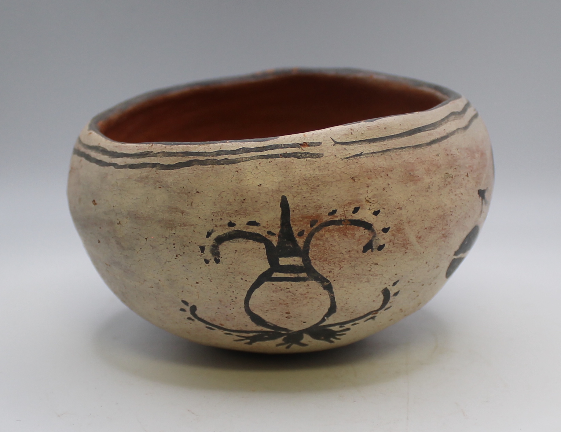 The Tesuque Polychrome Bowl from the late 1800s was made by artists from Tesuque Pueblo, New Mexico.